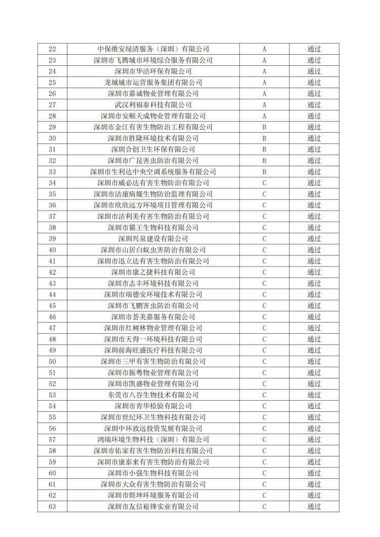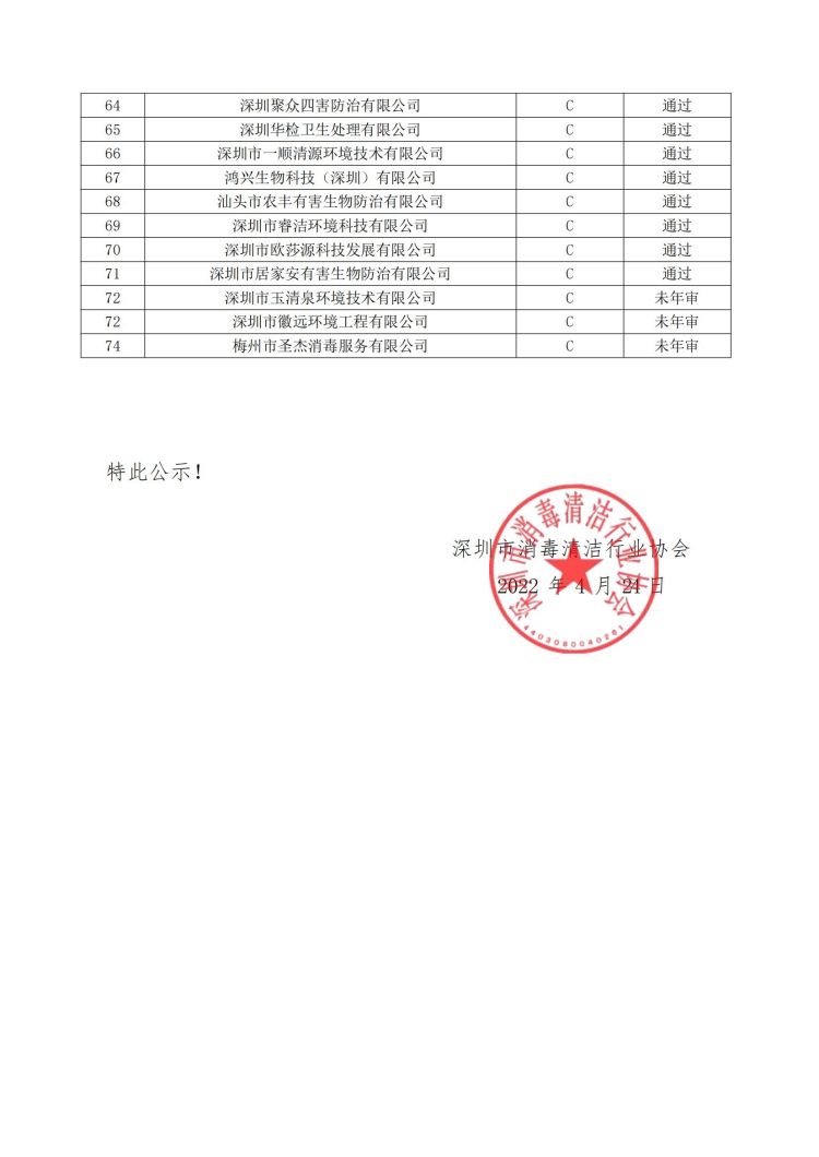 关于2022年度深圳市消毒清洁机构公共环境服务能力等级资质年检情况公示