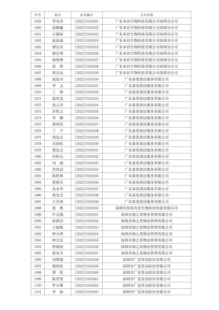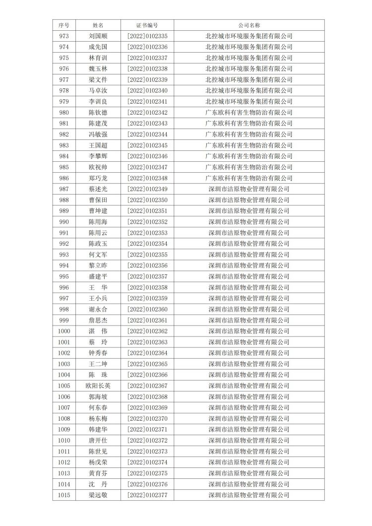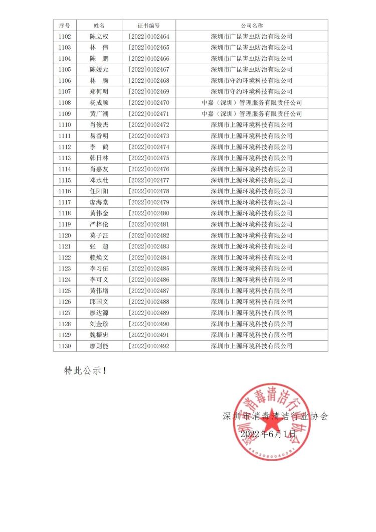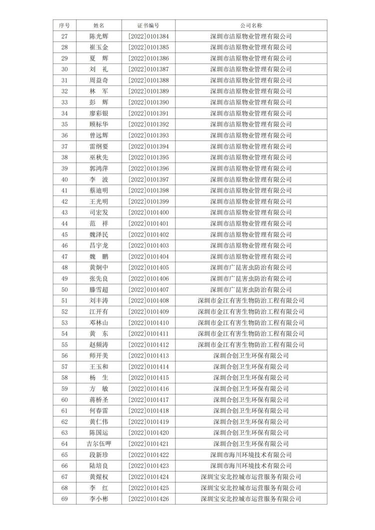 新冠病毒消毒清洁初级技能培训班合格人员名单公示
