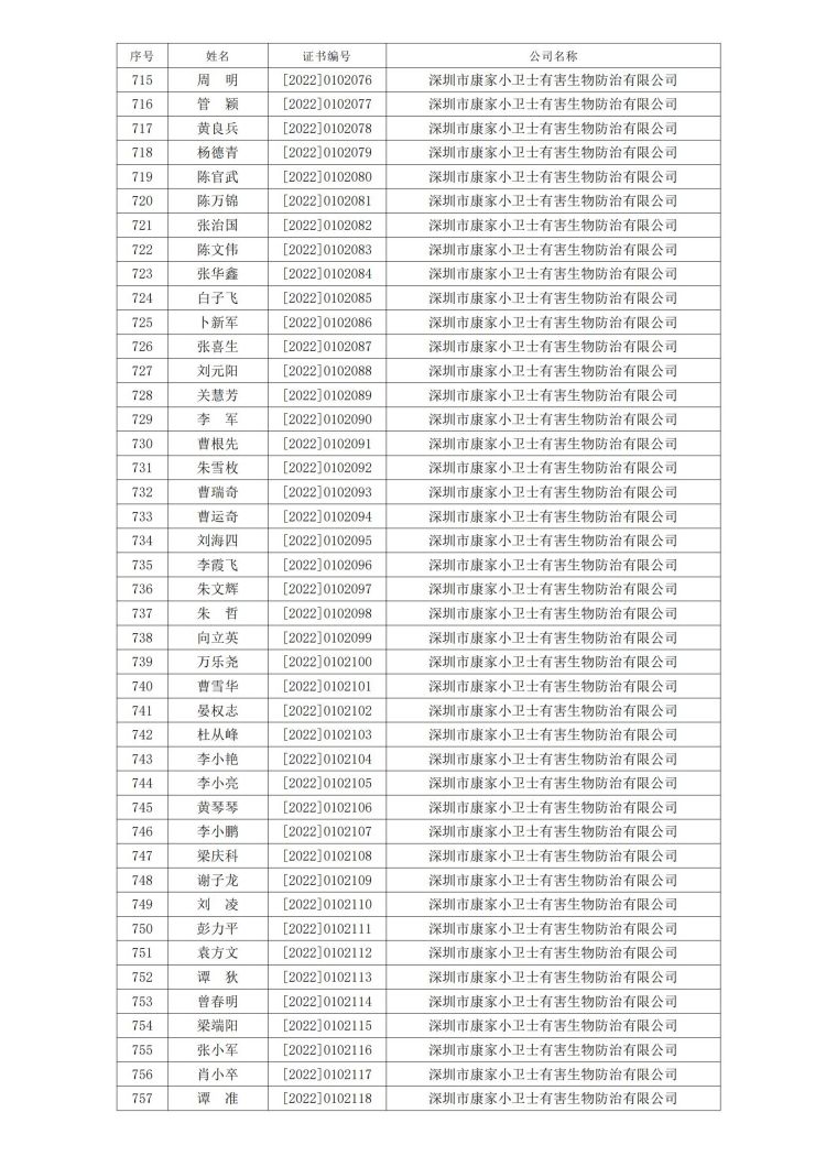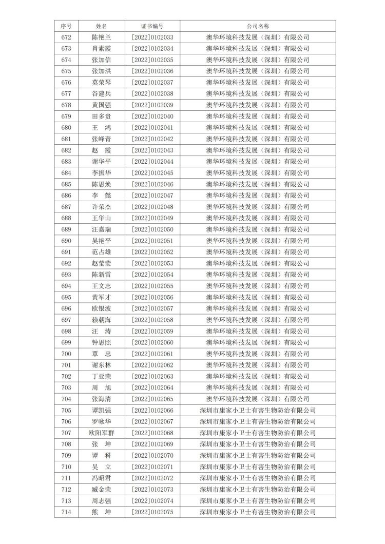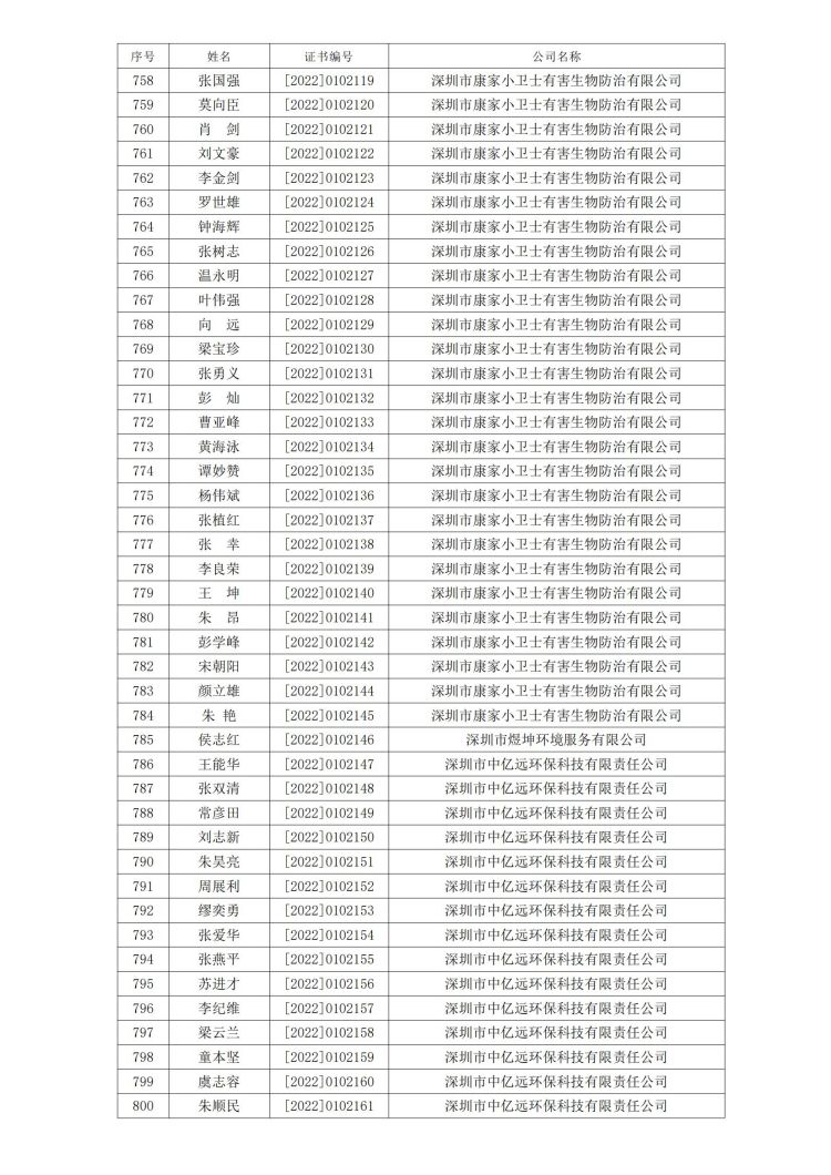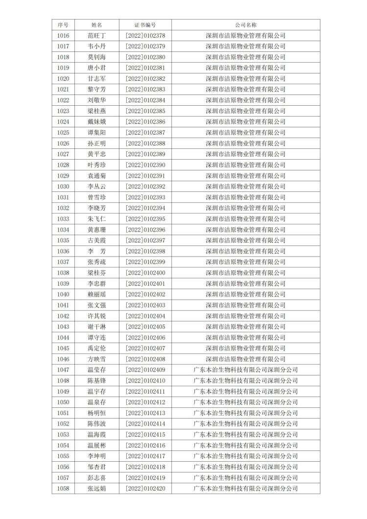 新冠病毒消毒清洁初级技能培训班合格人员名单公示