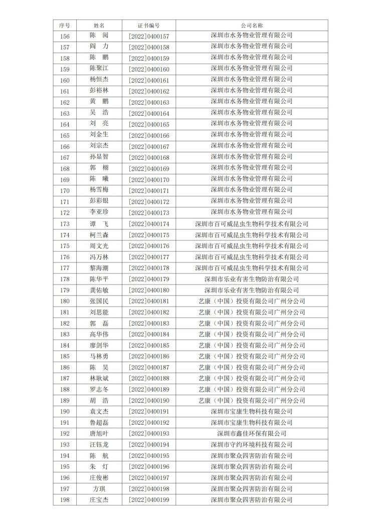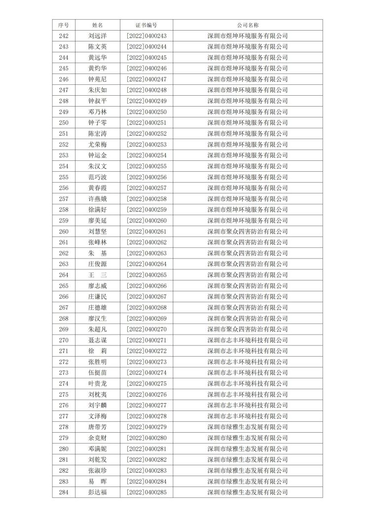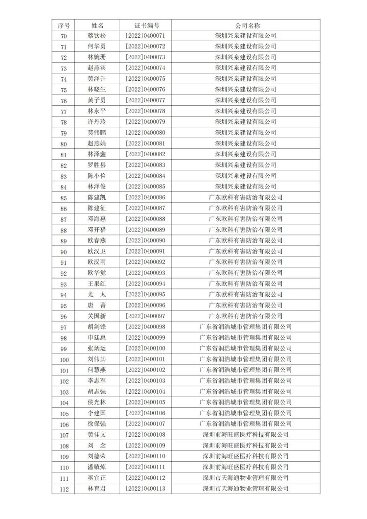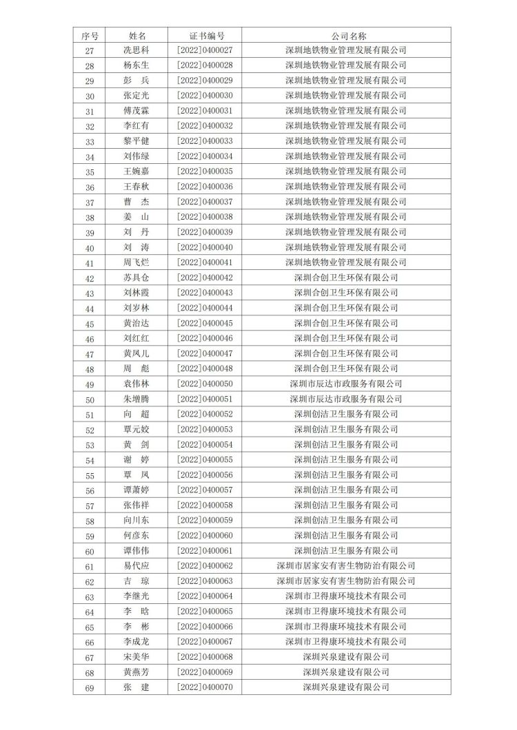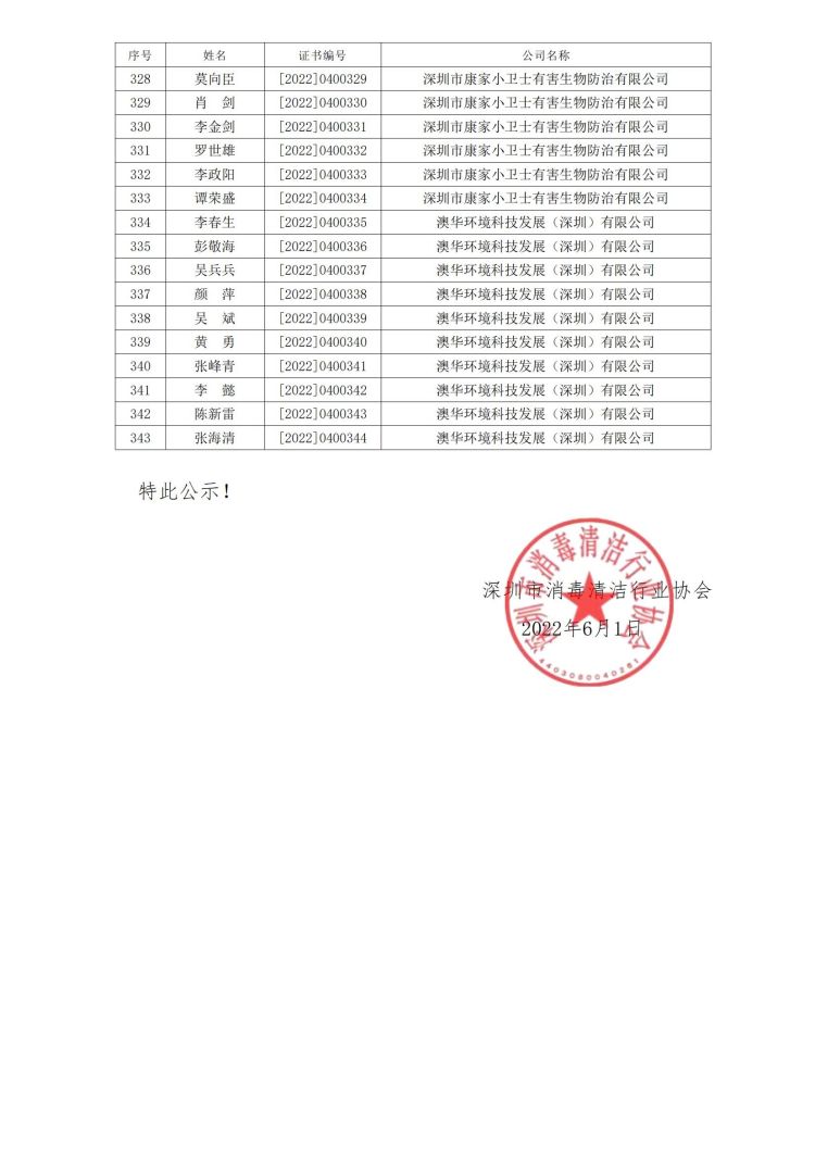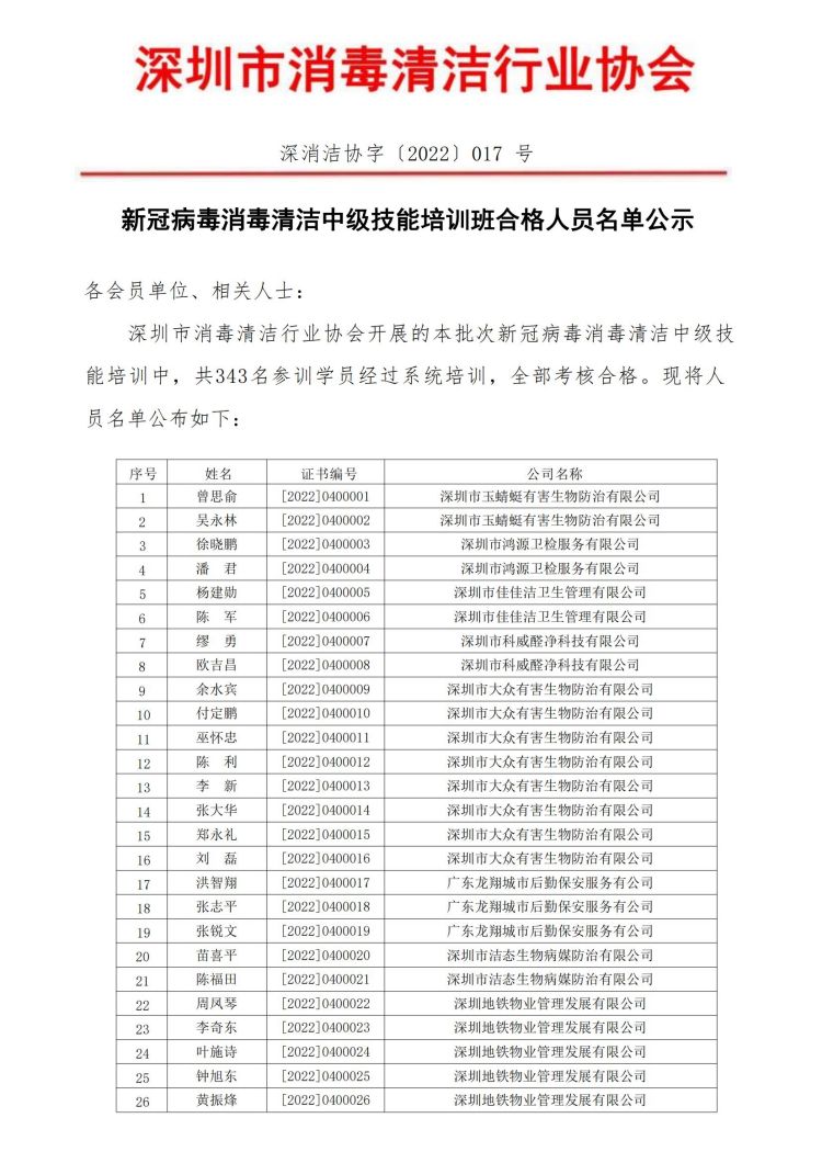 新冠病毒消毒清洁中级技能培训班合格人员名单公示