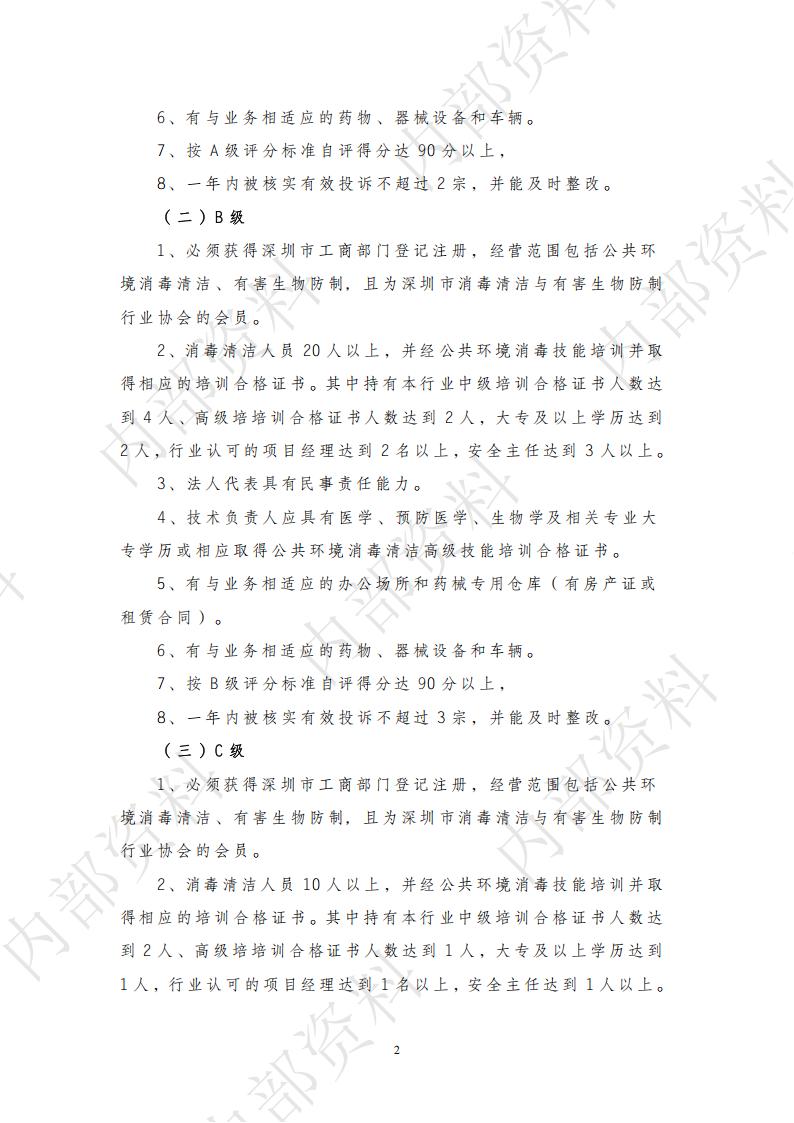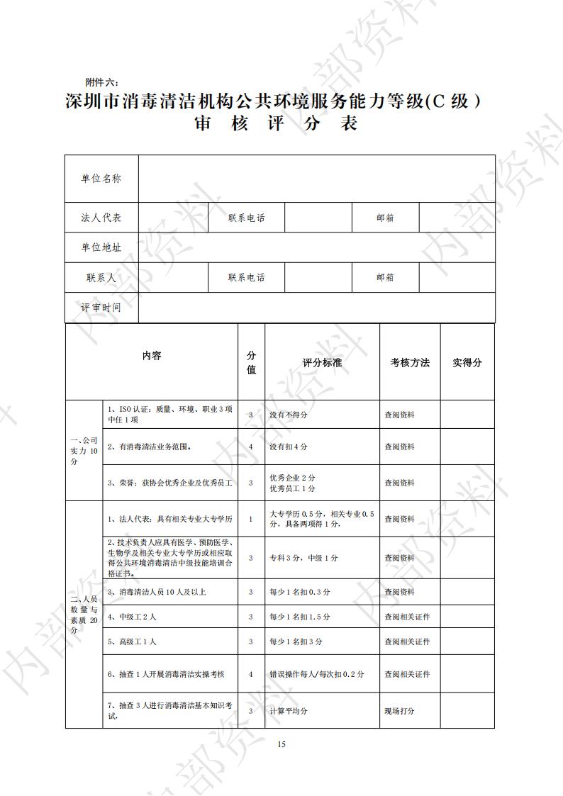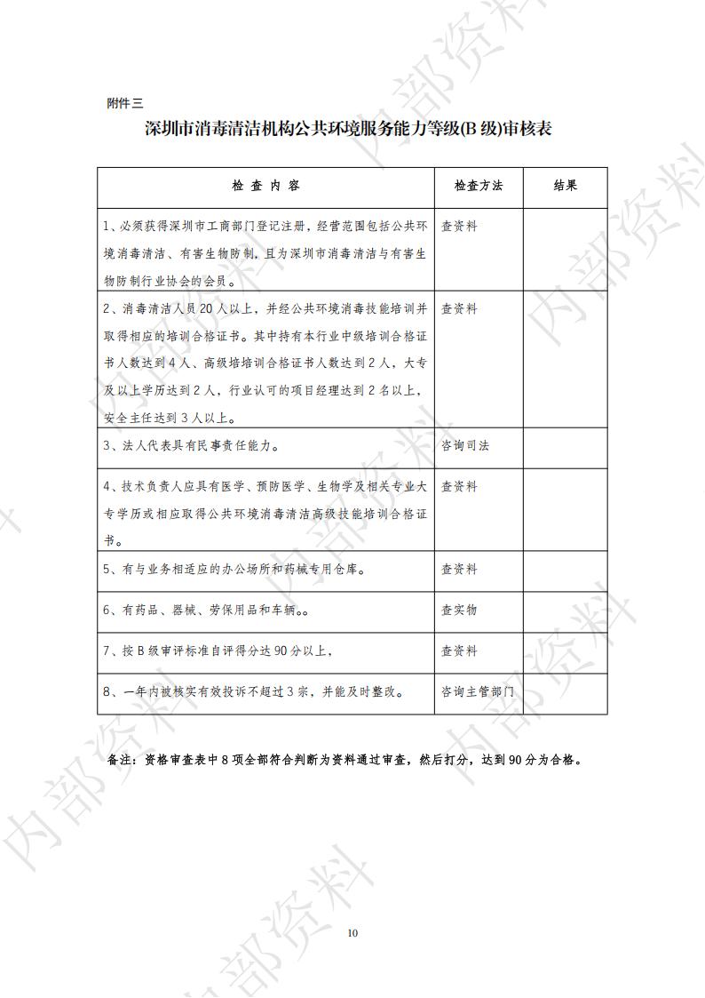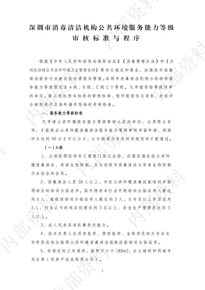 深圳市消毒清洁机构公共环境服务能力等级审核标准与程序