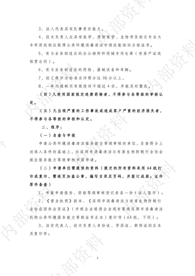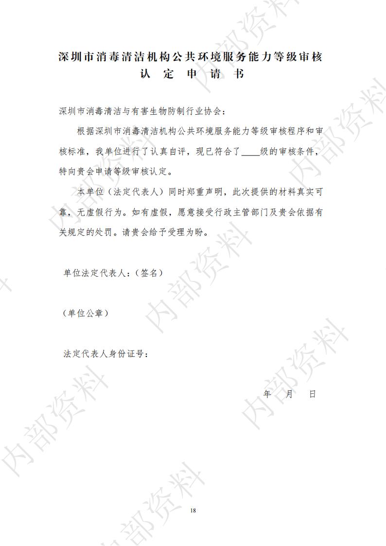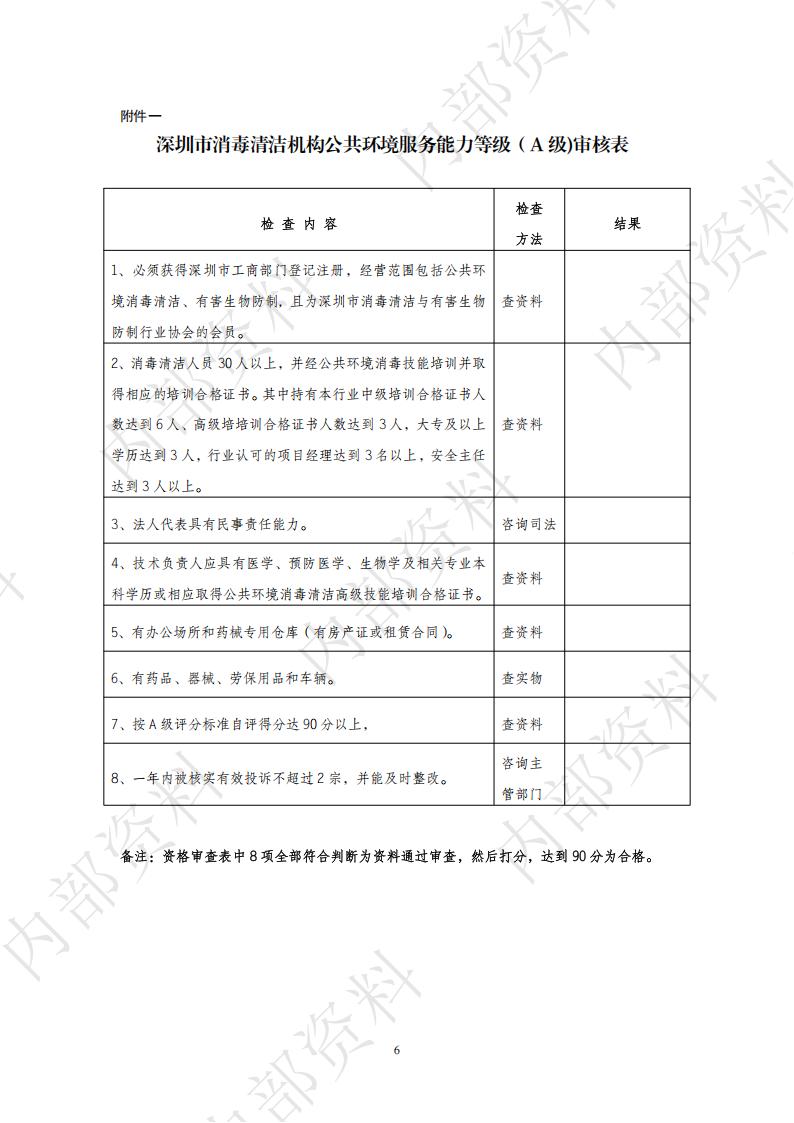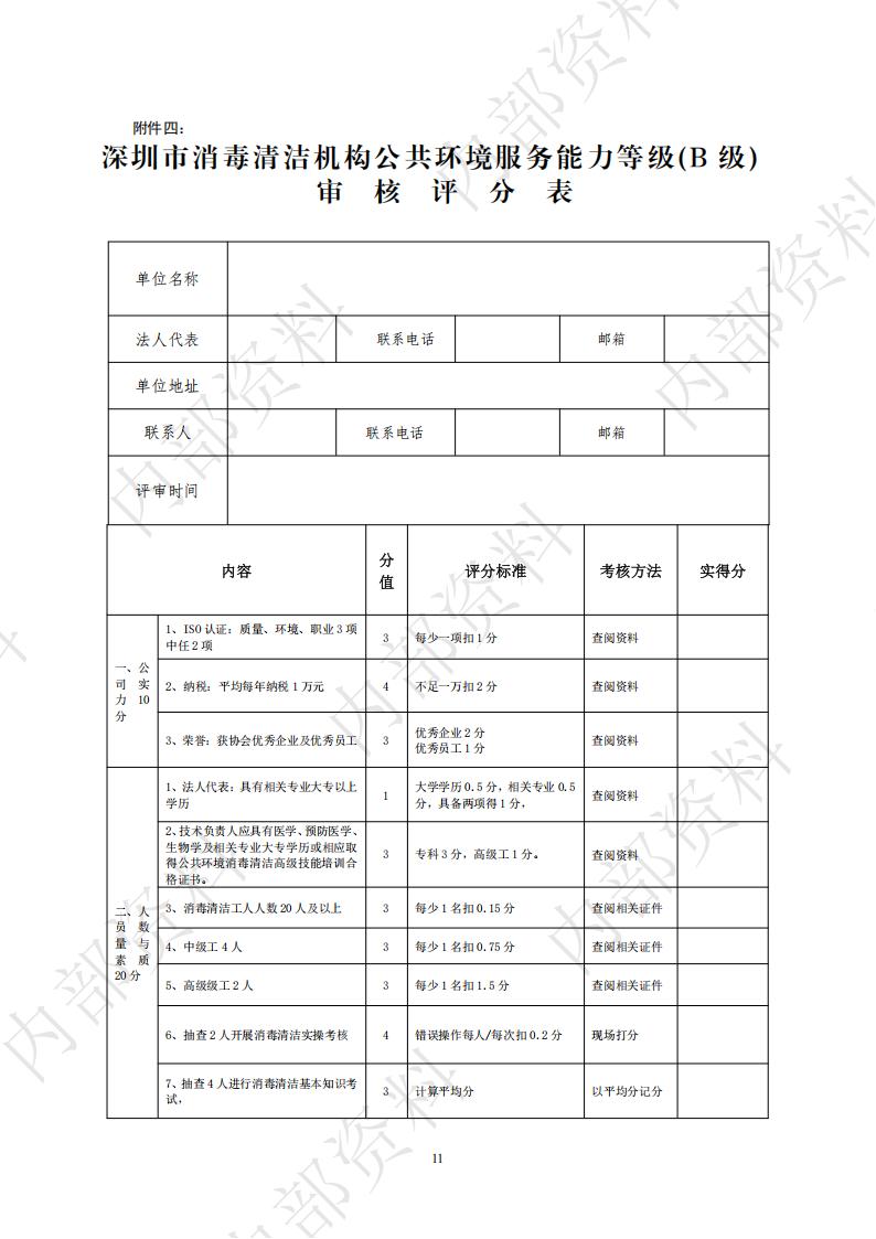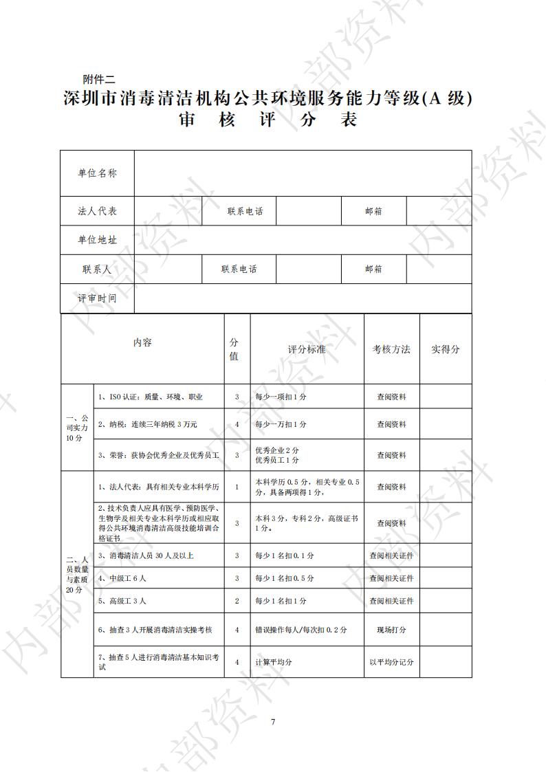 深圳市消毒清洁机构公共环境服务能力等级审核标准与程序